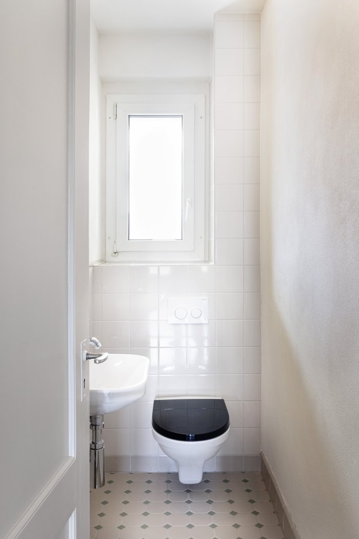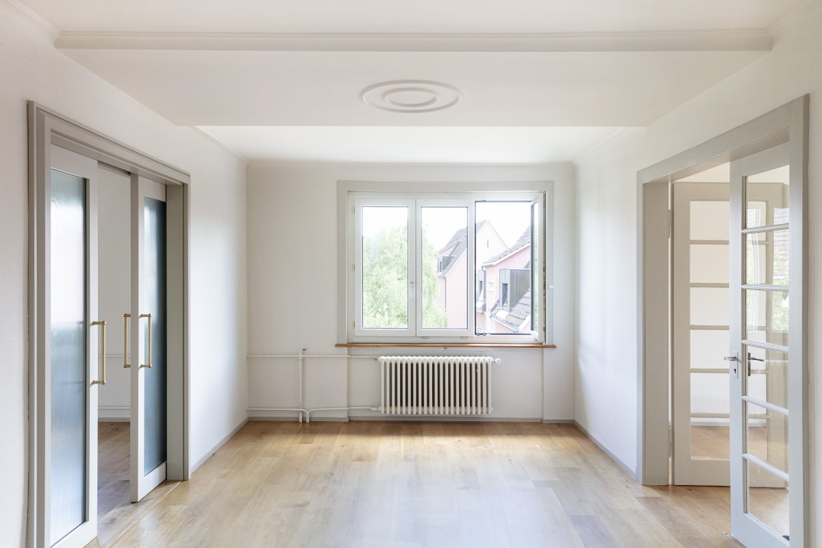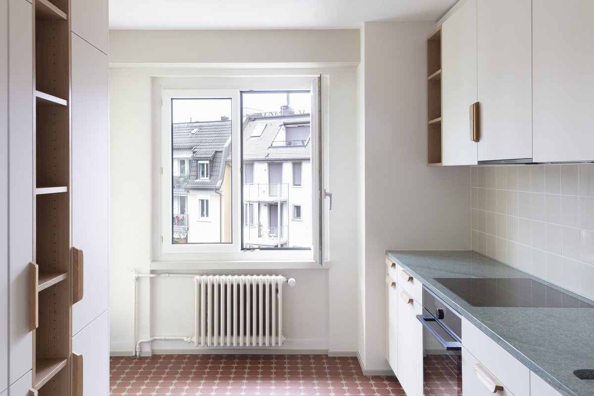Das Mehrfamilienhaus in Alt-Wiedikon ist ein typischer Vertreter der Zwischenkriegszeit. Der Bau schliesst einen Block mit Vorgärten ab, grüne Zwischenräume prägen das Quartier und spiegeln die damalige Bauweise wider. Die Wohnungen waren für vier oder fünfköpfige Familien konzipiert worden, wobei zwei Kinder im selben Zimmer schliefen und ein mittleres, eigentlich dem Wohnraum zugewandtes Zimmer als Puffer genutzt werden konnte.