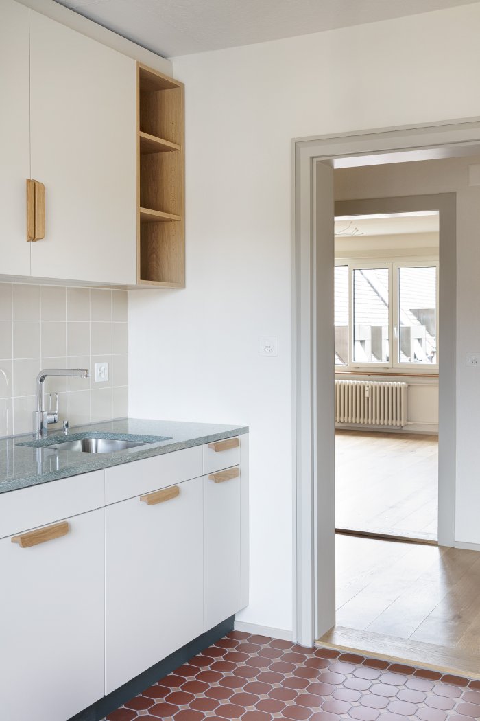 Das Bauvorhaben bestand aus zwei Teilobjekten: der Renovation der fünf Wohngeschosse und dem Ausbau des Estrichs zu einer zusätzlichen Wohneinheit