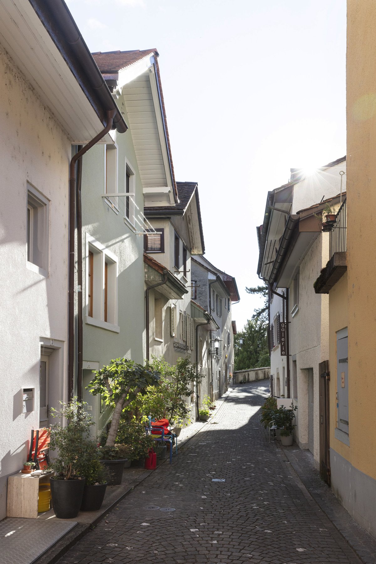 Das Wohnhaus liegt in der Altstadt von Brugg, unmittelbar über der Aareschlucht. Seine Fundamente reichen bis ins 14. Jahrhundert zurück.