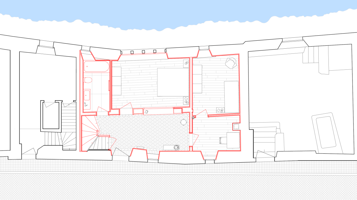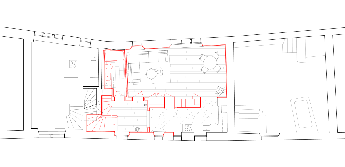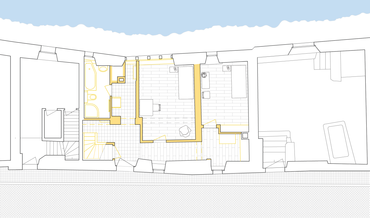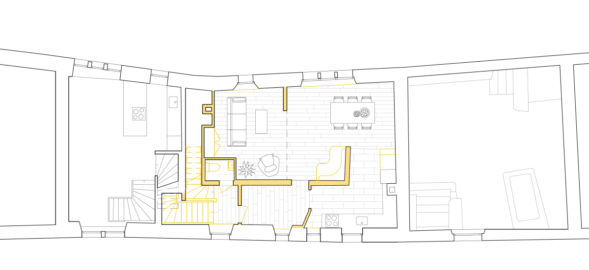 Wände und Decken waren über Jahrhunderte Schicht um Schicht überdeckt worden – Anstrich über Anstrich, Täfer auf Täfer, Pavatex, zuletzt ein kunststoffvergüteter Abrieb auf Gipsplatten. Was als sanfte Oberflächensanierung begann, führte schliesslich zum Rückbau sämtlicher Schichten bis auf das rohe Bruchsteinmauerwerk.